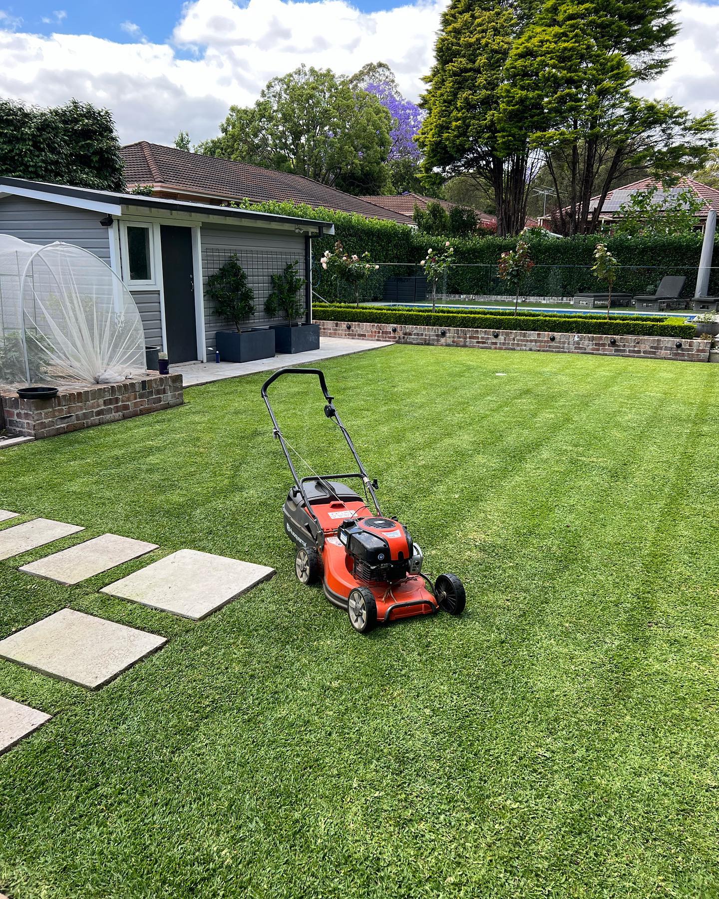 Regular mowing is a key aspect of proper lawn care. We recommend a consistent mowing schedule to maintain an optimal grass height, controlling weed growth and promoting healthy turf. Frame It Lawns and Gardens utilises precision mowers to ensure an even cut, resulting in a perfectly manicured lawn.